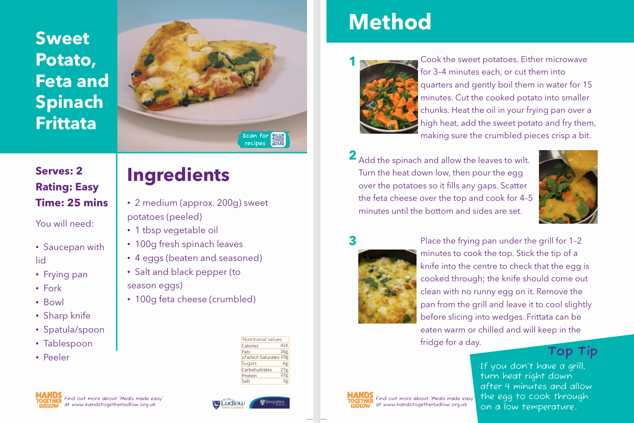 Sweet Potato, Feta and Spinach Frittata - Watch how to make this recipe by clicking here!